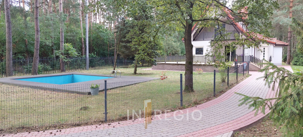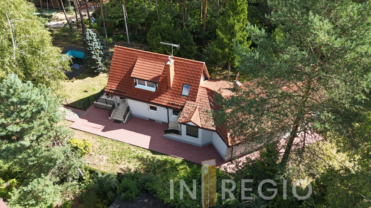 Nieruchomość o powierzchni 4 046 m² obejmuje ogrodzoną, zadbaną działkę zabudowaną domem jednorodzinnym o powierzchni całkowitej 157 m² (użytkowej ok. 122,5 m²), murowanym garażem dwustanowiskowym o pow. ok. 60 m² oraz basenem rekreacyjnym z tarasem wypoczynkowym.