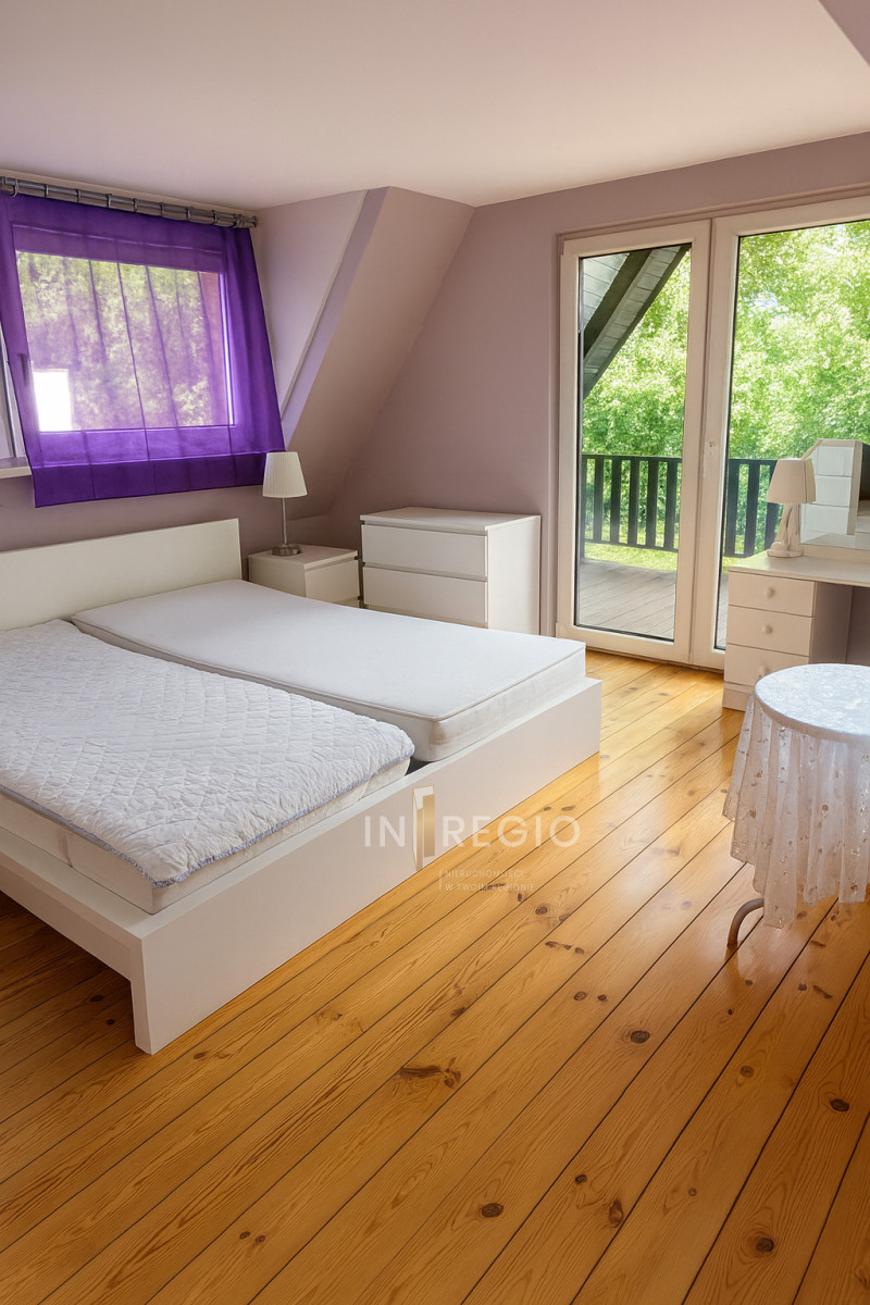 Dom po rozbudowie w 2000 roku, z ogrzewaniem olejowym Ferroli, dużą działką o powierzchni 4 046 m², garażem dwustanowiskowym i basenem, stanowi doskonałą propozycję dla osób szukających przestronnego domu całorocznego lub miejsca do wypoczynku.