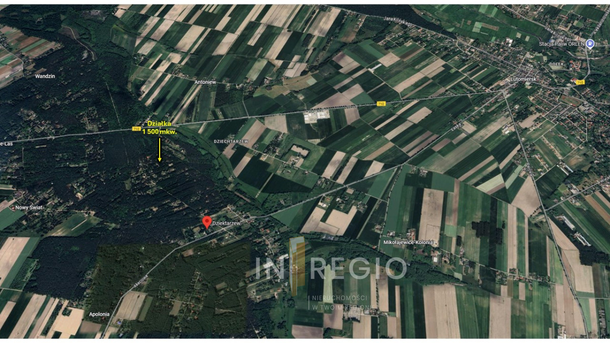Przedmiotem sprzedaży jest działka gruntu o pow.: 1 500 mkw. w kształcie prostokąta o wymiarach 27 m na 58 m położona w miejscowości Dziektarzew na terenie gminy Lutomiersk (4 min jazdy samochodem do Lutomierska) Najbliższe otoczenie stanowią tereny leśne które znacząco zdominowały krajobraz. Sąsiednie działki zabudowane są domami letniskowymi oraz budynkami mieszkalnymi jednorodzinnymi. Droga dojazdowa do działki jest piaskowa i uzbrojona w media miejskie: PRĄD I WODOCIĄG.