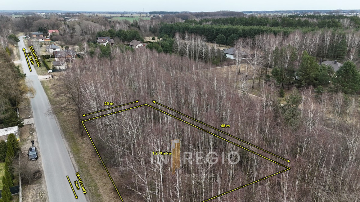 Przedmiotem sprzedaży jest nieuzbrojona działka budowlana położona przy drodze asfaltowej, pomiędzy dwiema dużymi miejscowościami: Lutomiersk (ok.: 3,5 km) oraz Wodzierady (ok.: 3 km). Nieruchomość jest nieogrodzona, zadrzewiona, niezabudowana i zajmuje powierzchnię 1200 mkw. (wymiary: 48 m front na 25 m głębokości). W najbliższym sąsiedztwie dominuje zabudowa mieszkaniowa jednorodzinna oraz grunty zadrzewione/zalesione. Takie położenie sprzyja spędzaniu wolnego czasu na świeżym powietrzu.