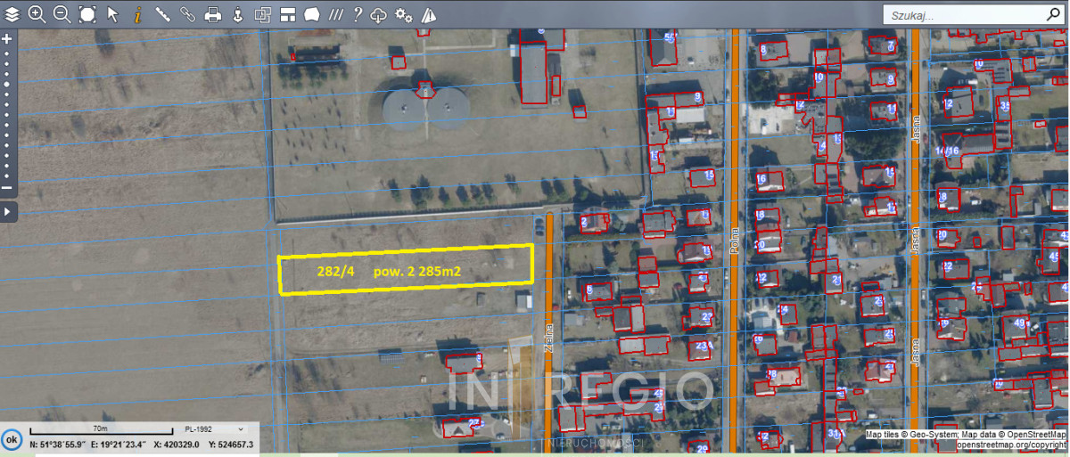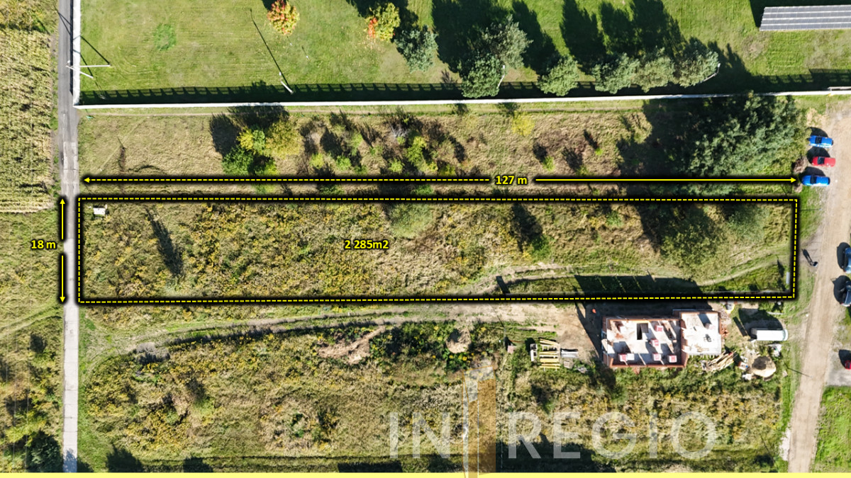 Trzy minuty zajmuje dojazd od nieruchomości do Szkoły Podstawowej oraz Przedszkola położonych w Bychlewie lub 10 minut spacerem do tych instytucji. W ciągu 5 minut możemy znaleźć się na zakupach w sklepie sieci Dino. Powierzchnia działki: Powierzchnia nieruchomości to 2 285m2, a jej kształt to prostokąt o froncie o szerokości ok 18m a długości ok 127 m. Działka posiada dostęp z dwóch stron do dróg publicznych tj do ul. Zielnej i do ul. Wodnej.