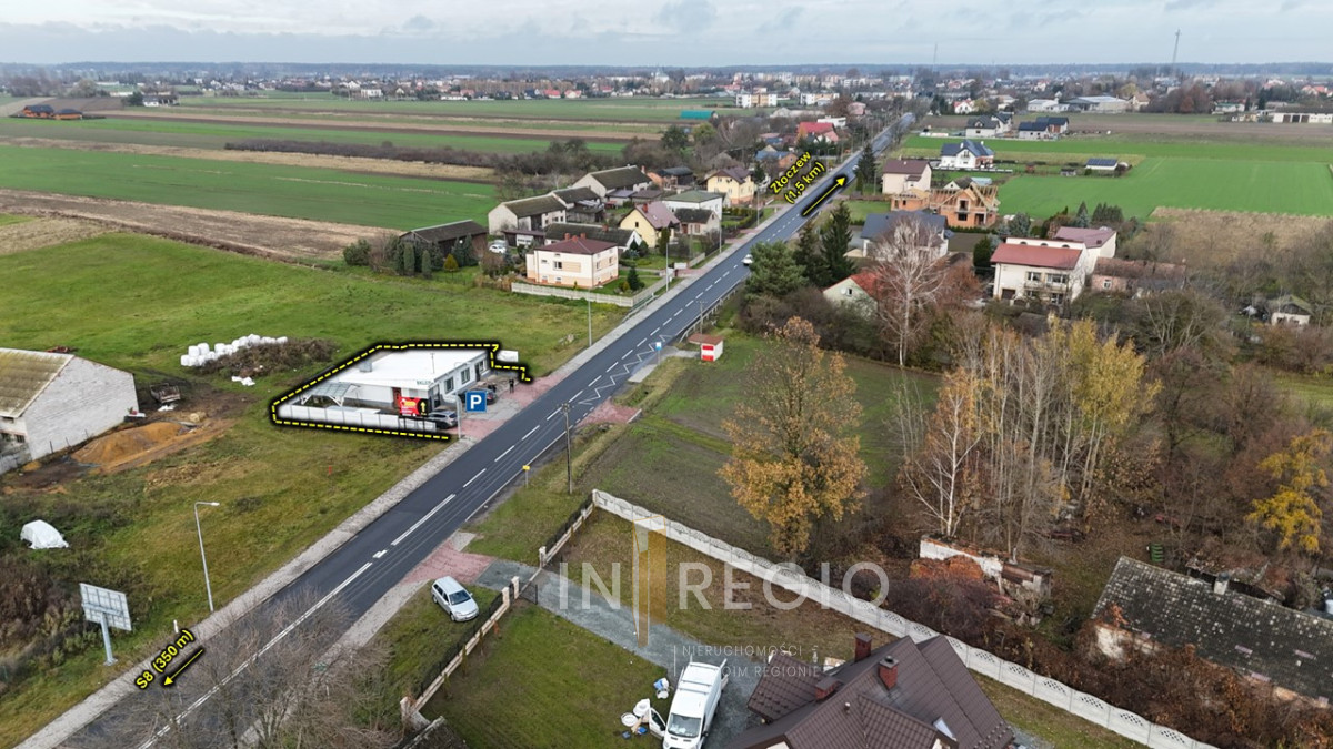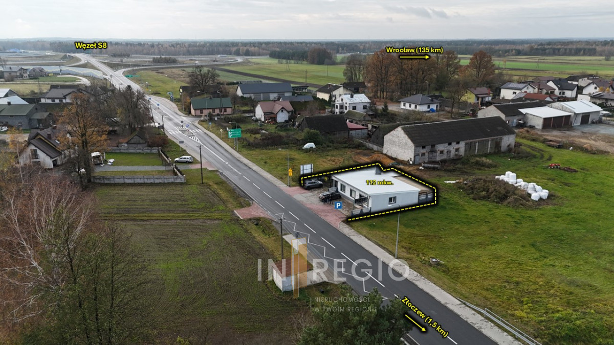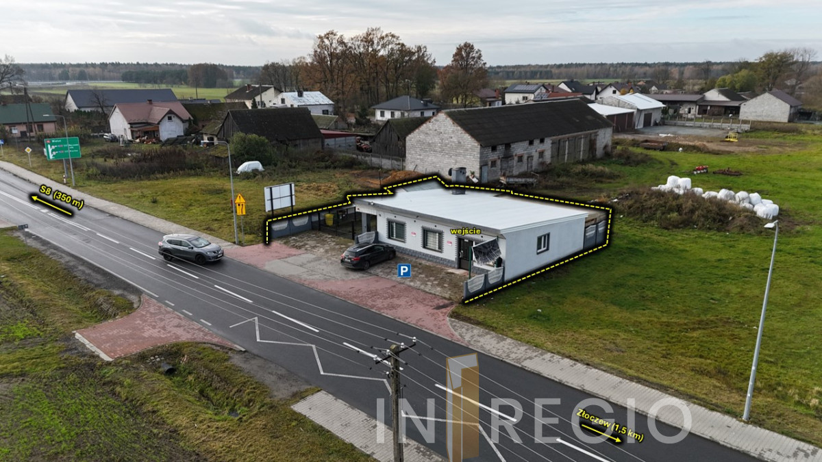 Przedmiotem sprzedaży jest budynek o przeznaczeniu handlowo - mieszkalnym o powierzchni użytkowej 111 mkw. położony w odległości 300 m od zjazdu z AUTOSTRADY S8 (po lewej stronie jadąc w kierunku miejscowości ZŁOCZEW w powiecie sieradzkim). W lokalu prowadzony był SKLEP SPOŻYWCZY ZE SPRZEDAŻĄ ALKOHOLU O POW. SALI SPRZEDAŻY: 31 MKW. (38 MKW.) ISTNIEJE MOŻLIWOŚĆ PRZEBUDOWY LOKALU ZMIENIAJĄC PARAMETRY POSZCZEGÓLNYCH POMIESZCZEŃ. Działka w kształcie kwadratu o szerokości frontu: 20 m na której znajduje się budynek zajmuje powierzchnię 400 mkw. 4 MIEJSCA PARKINGOWE OD FRONTU.