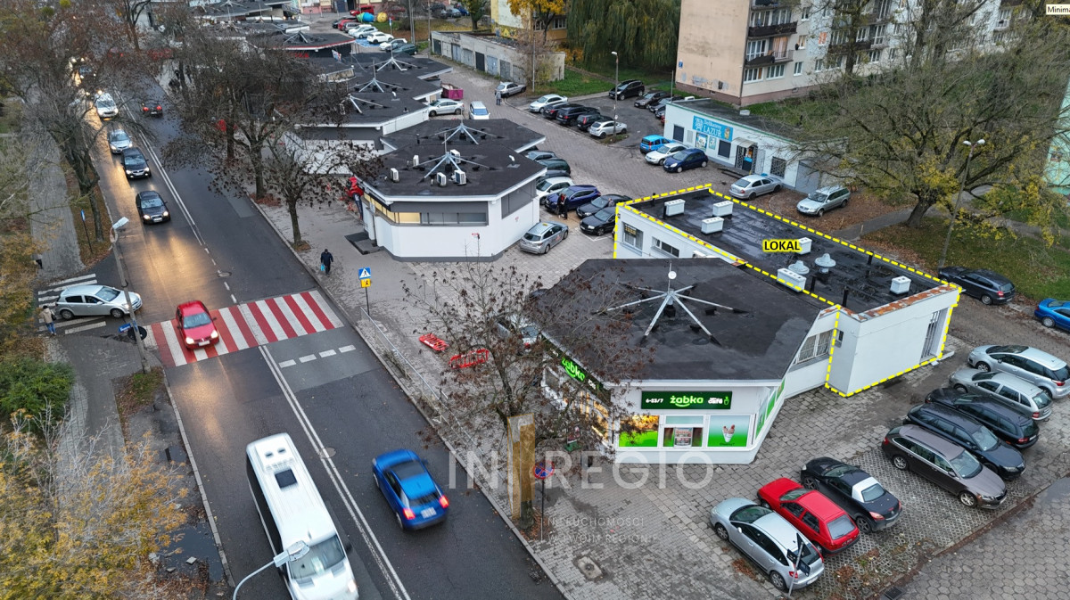 Opisywany Lokal znajduje się w Łodzi na Dąbrowie przy skrzyżowaniu dwóch ruchliwych ulic: Ul. Broniewskiego oraz Ul. K.I. Gałczyńskiego charakteryzujących się dużym natężeniem ruchu samochodowego i pieszego. Na atrakcyjność lokalizacji wpływa duża ilość mieszkańców pobliskiego osiedla mieszkaniowego oraz liczne sklepy generujące ruch. Dodatkowym atutem jest bliska odległość przystanków komunikacji miejskiej. Parkingi są ogólnodostępne. Istnieje możliwość parkowania bezpośrednio przed lokalem na działce właściciela i oznaczenia miejsc za uprzednim uzgodnieniem.
