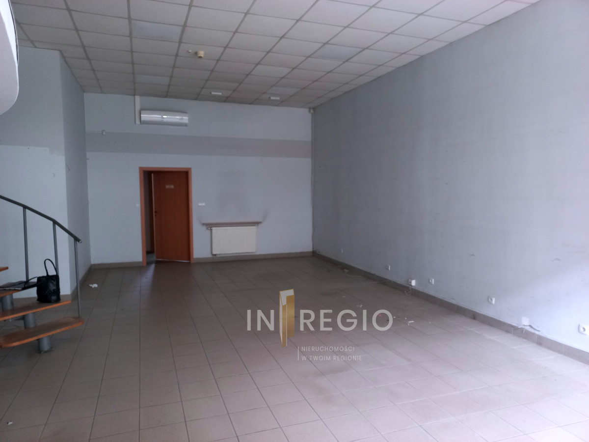 Lokal jest w dobrym stanie, do odświeżenia, na ścianach gładzie, sufit podwieszany. Na podłogach terakota. Okna i witryna wejściowa plastikowe. Dodatkowo do dyspozycji najemcy mogą być kontenery usytuowane na podwórku. Do lokalu są dwa wejścia.