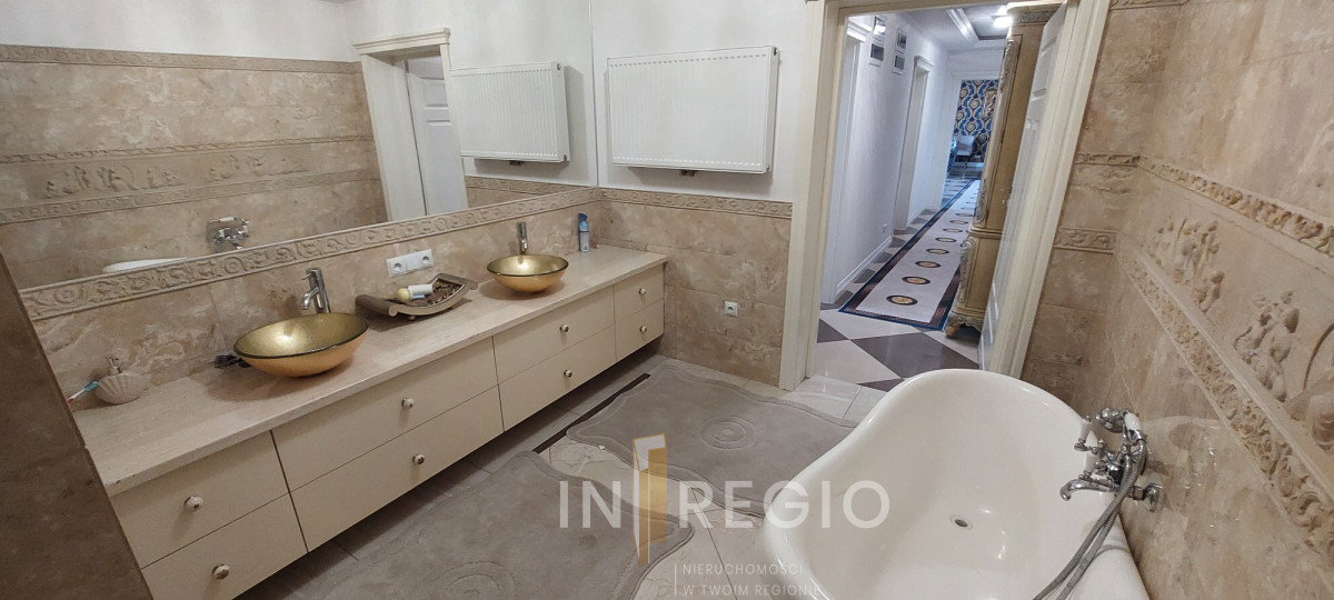 Całość pomieszczeń wykończona w wysokim standardzie. Na podłogach znajduje się gres szkliwiony lub parkiet. Ściany gładzie, stiuk, podwieszane sufity z oświetleniem led. Lokal może zostać wynajęty bez widocznych na zdjęciu mebli.