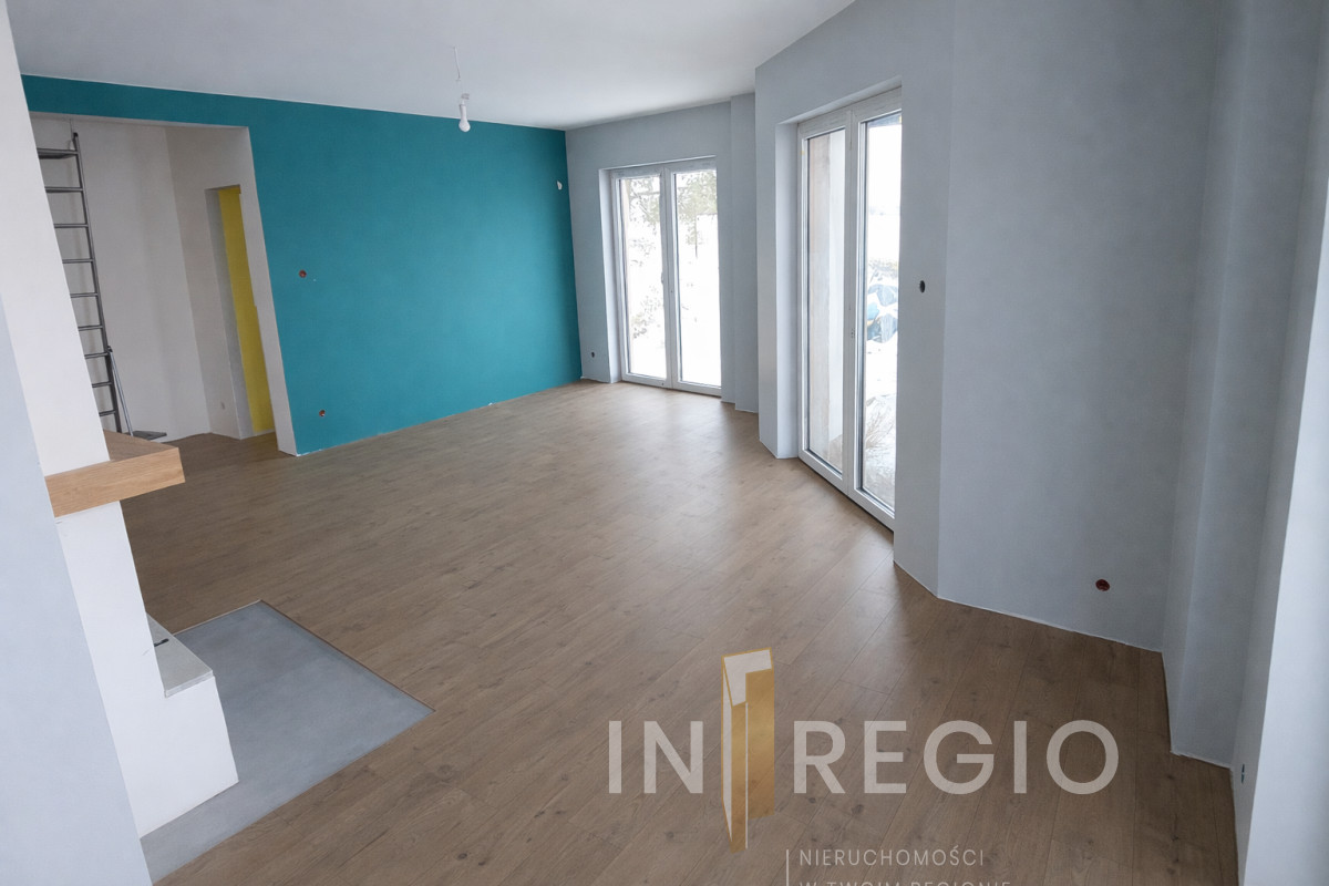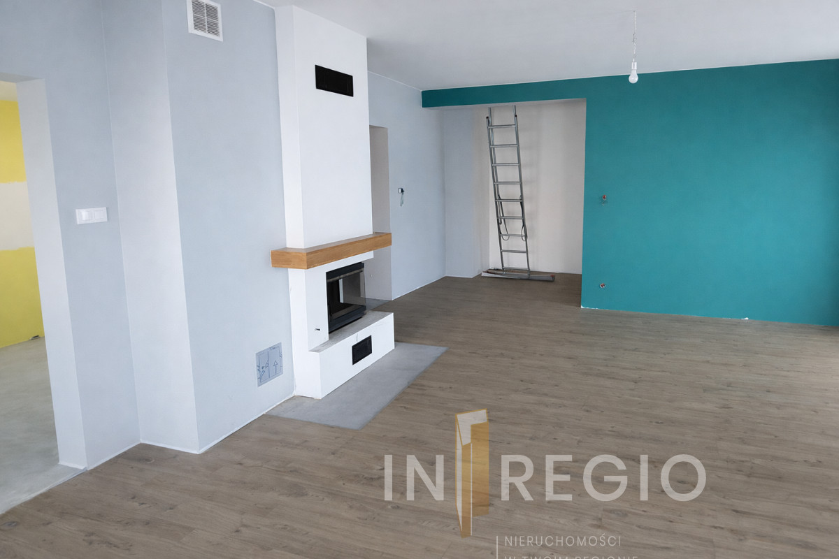 Na obu kondygnacjach wykonano gładzie gipsowe, co znacząco przyspiesza wykończenie wnętrz. Na parterze rozprowadzono ogrzewanie podłogowe, a podłogi przygotowano i wykończono wysokiej jakości panelami przystosowanymi do ogrzewania podłogowego (technologia skandynawska). W salonie znajduje się kominek, który pełni funkcję zarówno użytkową, jak i dekoracyjną. Parter jest w stanie umożliwiającym rozpoczęcie umeblowania.